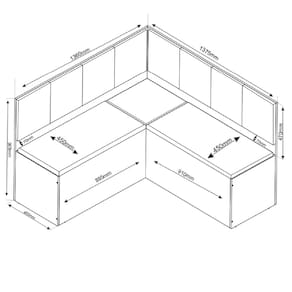 ITENS INCLUSOS: 1 Canto alemão, 1 mesa e 2 cadeiras, 1 manual de montagem e 1 kit parafusos
