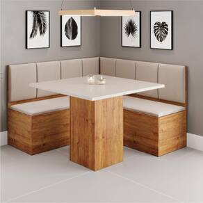 O Conjunto Sala de Jantar Canto Alemão Liebe com Mesa Lord é a escolha perfeita para transformar sua cozinha ou sala de jantar com charme, funcionalidade e conforto. Com design inteligente, ele é ideal para ambientes compactos que não abrem mão da elegância. O canto possui baú interno, oferecendo praticidade e espaço extra para organização. Os assentos são acolchoados e revestidos em veludo, proporcionando um toque macio e visual sofisticado. A mesa conta com tampo em pintura UV, que garante maior durabilidade e um acabamento moderno, enquanto sua base firme completa o design com versatilidade e estilo.