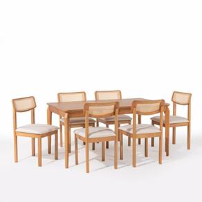 Desenvolvida para quem deseja mais acolhimento no décor, o conjunto Florença composto por 6 cadeiras com encosto de telinha e 1 mesa de tampo laminado de 1,60 é perfeita. Por ser produzida com madeira maciça de eucalipto reflorestado e acabamento Verniz mel, juntamente com o tecido claro na cor cru 06 , proporciona um ambiente com estilo luminoso, arejado e acolhedor. É Ideal para sua cozinha e sala de jantar, formando um ambiente de bem estar perfeito para desfrutar junto de família e amigos uma refeição maravilhosa. Medida da Mesa (A x L x P): 76 x 160 x 90 Peso da Mesa: 30 kg Mesa suporta até: 50 kg Acabamento da Cadeira/Banco: Verniz Natural Acabamento da Mesa: Verniz Ambiente Principal: Sala de Jantar Cadeira/Banco estofada: Somente Assento Estofado Cadeira/Banco Estofada: Somente Assento Estofado Cadeira/Banco Suporta Até: 120.0000 Cadeira/Banco suporta até: 120 kg codigo_ean: 7900288285720 Complexidade da Montagem: Baixa: pode ser montado por uma pessoa sozinha Cor: Cru/Verniz Mel Cor do Produto: Cru/Verniz Mel Cor Secundária: Bege De Canto (Canto Alemão): Não Escala de Brilho: Semi-Brilho Espessura do Tampo: 35 mm Estrutura do Assento: MDF/Espuma Formato do Tampo: Retangular Informações Complementares: Este produto foi pensado e desenvolvido para elevar a decoração do seu ambiente interno e trazer um ar de sofisticação para sua sala de jantar. É recomendado seguir as instruções de manutenção e acabamento que acompanham a embalagem. Itens Inclusos: 1 Mesa, 6 Cadeiras, Manual de Montagem e Kit Ferragens Linha ou Coleção: Florença Manual de Especificação Técnica: https://product-hub-prd.madeiramadeira.com.br/205433659/documents/0c27c417-b7c6-4045-b974-26a69ed39b4e3309704293217621799814252.pdf Manual de Montagem e Instalação: https://product-hub-prd.madeiramadeira.com.br/205433659/documents/6a350ac0-f5a8-4d77-8664-7231db9d29353309705293217621801470834.pdf Marca: Casa e Jardim Móveis Material da Base da Mesa: MDF/Madeira Maciça Material da Estrutura da Cadeira: Madeira Maciça Material do Tampo: Laminado Medida da Cadeira/Banco (A x L x P): 88 x 48 x 51 Medida do Tampo (L x C x E): 160 x 90 x 3,5 Mesa Extensível: Não Necessita Montagem: Sim Origem do Produto: Nacional Peso da Cadeira/Banco: 6,5 kg Possui Apoio Para os Pés: Não Quantidade de Cadeiras: 6 Quantidade de Lugares: 06 Recomendações de Uso, Manutenção e Limpeza: Utilizar em ambiente interno ,coberto. Os tampos das mesas são de MDF com encabeçamento em madeira maciça, evite molhar ou deixar líquidos por muito tempo para que não ocorra bolhas.o expor ao sol e chuva. Cuidados e limpeza : Retire o pó com uma flanela macia, seca ou levemente umedecida. Passe uma esponja macia e levemente umedecida. Não utilizar álcool ou produtos químicos, abrasivos ou solventes. Sistema de Montagem: parafusos , mas somente a mesa, as cadeiras já vão montadas