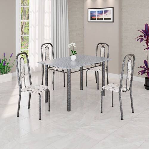 Quer deixar sua casa completa e prática? Uma dica bacana de como transformar o seu lar, deixando-o mais receptivo e bonito? Então você precisa de móveis indispensáveis para deixar seu lar muito mais aconchegante, receptivo e sempre disponível para receber a visita de amigos, familiares e convidados. Você vai se apaixonar por este incrível e moderno Conjunto de Mesa com 4 Cadeiras. Ideal para cozinha, ele é a melhor opção para completar o espaço que você desejar. Aproveite!! Medida da Mesa (A x L x P): 75,8 cm x 120 cm x 75 cm Peso da Mesa: 57,08 kg Mesa suporta até: 10.0000 Acabamento da Cadeira/Banco: Pintura Texturizada Acabamento da Mesa: Pintura Texturizada Ambiente Principal: Cozinha Cadeira/Banco Estofada: Encosto e Assento Estofados Cadeira/Banco estofada: Encosto e Assento Estofados Cadeira/Banco suporta até: 120.0000 codigo_ean: 7900288147820 Complexidade da Montagem: Baixa: pode ser montado por uma pessoa sozinha Cor: Arabesco/ Prata Cor do Produto: Arabesco/ Prata Cor Secundária: Bege De Canto (Canto Alemão): Não Enchimento do Assento: Espuma D-16 Escala de Brilho: Semi-Brilho Espessura do Tampo: 1,5 mm Estrutura do Assento: MDP Formato do Tampo: Retangular Itens Inclusos: 1 Mesa, 4 Cadeiras , Kit Ferragens e Manual de Montagem Linha ou Coleção: Lívia Manual de Montagem e Instalação: https://product-hub-prd.madeiramadeira.com.br/638345826/documents/3b481975-4c16-4f52-b7cc-2df64da454dbd2741541352817418186330048.pdf Marca: Soma Móveis Material da Base da Mesa: Aço Material da Estrutura da Cadeira: Aço Material do Tampo: Granito Medida da Cadeira/Banco (A x L x P): 94 cm x 36 cm x 40 cm Medida do Tampo (L x C x E): 120cm x 75cm x 1,5 cm Mesa Extensível: Não Necessita Montagem: Sim Origem do Produto: Nacional Peso da Cadeira/Banco: 2,28 kg Possui Apoio Para os Pés: Não Quantidade de Cadeiras: 4 Quantidade de Lugares: 04 Recomendações de Uso, Manutenção e Limpeza: Não permitir que molhe os pés da base, usar um pano de tecido macio e seco, evitar detergentes, alvejantes e produtos químicos de limpeza; no tampo usar tecido macio levemente umedecido. Revestimento da Cadeira/Banco: Couro Ecológico Sistema de Montagem: Parafusos