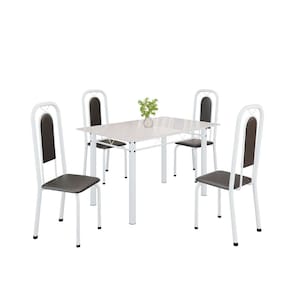 Quer deixar sua casa completa e prática? Uma dica bacana de como transformar o seu lar, deixando-o mais receptivo e bonito? Então você precisa de móveis indispensáveis para deixar seu lar muito mais aconchegante, receptivo e sempre disponível para receber a visita de amigos, familiares e convidados. Você vai se apaixonar por este incrível e moderno Conjunto de Mesa com 4 Cadeiras. Ideal para cozinha, ele é a melhor opção para completar o espaço que você desejar. Aproveite!! Medida da Mesa (A x L x P): 75,8 cm x 120 cm x 75 cm Peso da Mesa: 19,15 kg Mesa suporta até: 10.0000 Acabamento da Cadeira/Banco: Pintura Texturizada Acabamento da Mesa: Pintura Texturizada Ambiente Principal: Cozinha Cadeira/Banco Estofada: Encosto e Assento Estofados Cadeira/Banco estofada: Encosto e Assento Estofados Cadeira/Banco suporta até: 120.0000 codigo_ean: 7900288149657 Complexidade da Montagem: Baixa: pode ser montado por uma pessoa sozinha Cor: Preto / Branco Cor do Produto: Preto / Branco Cor Secundária: Cinza De Canto (Canto Alemão): Não Enchimento do Assento: Espuma D-16 Escala de Brilho: Brilhante Espessura do Tampo: 6 mm Espessura do Vidro: 6 mm Estrutura do Assento: MDP Formato do Tampo: Retangular Itens Inclusos: 1 Mesa, 4 Cadeiras, Manual de Montagem e Kit Ferragens Linha ou Coleção: Lara Manual de Montagem e Instalação: https://product-hub-prd.madeiramadeira.com.br/437990002/documents/94c8880d-141a-4816-874f-7f9df6bf955692818001352817441405246925.pdf Marca: Soma Móveis Material da Base da Mesa: Aço Material da Estrutura da Cadeira: Aço Material do Tampo: Vidro Medida da Cadeira/Banco (A x L x P): 105 cm x 37 cm x 40 cm Medida do Tampo (L x C x E): 120cm x 75cm x 0,6 cm Mesa Extensível: Não Necessita Montagem: Sim Origem do Produto: Nacional Peso da Cadeira/Banco: 2,7 kg Possui Apoio Para os Pés: Não Quantidade de Cadeiras: 4 Quantidade de Lugares: 04 Recomendações de Uso, Manutenção e Limpeza: Não permitir que molhe os pés da base, usar um pano de tecido macio e seco, evitar detergentes, alvejantes e produtos químicos de limpeza; no tampo usar tecido macio levemente umedecido. Revestimento da Cadeira/Banco: Couro Sistema de Montagem: Parafusos Vidro Temperado: Sim