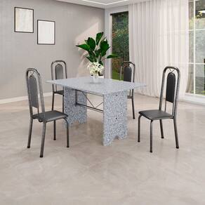 Quer deixar sua casa completa e prática? Uma dica bacana de como transformar o seu lar, deixando-o mais receptivo e bonito? Então você precisa de móveis indispensáveis para deixar seu lar muito mais aconchegante, receptivo e sempre disponível para receber a visita de amigos, familiares e convidados. Você vai se apaixonar por este incrível e moderno Conjunto de Mesa com 4 Cadeiras. Ideal para cozinha, ele é a melhor opção para completar o espaço que você desejar. Aproveite!! Medida da Mesa (A x L x P): 75,8 cm x 120 cm x 75 cm Peso da Mesa: 81,74 kg Mesa suporta até: 10.0000 Acabamento da Cadeira/Banco: Pintura Texturizada Acabamento da Mesa: Pintura Texturizada Ambiente Principal: Cozinha Cadeira/Banco Estofada: Encosto e Assento Estofados Cadeira/Banco estofada: Encosto e Assento Estofados Cadeira/Banco suporta até: 120.0000 codigo_ean: 7900288149244 Complexidade da Montagem: Baixa: pode ser montado por uma pessoa sozinha Cor: Preto / Prata Cor do Produto: Preto / Prata Cor Secundária: Cinza De Canto (Canto Alemão): Não Enchimento do Assento: Espuma D-16 Escala de Brilho: Brilhante Espessura do Tampo: 1,5 mm Estrutura do Assento: MDP Formato do Tampo: Retangular Itens Inclusos: 1 Mesa, 4 Cadeiras, Manual de Montagem e Kit Ferragens Linha ou Coleção: Lara Manual de Montagem e Instalação: https://product-hub-prd.madeiramadeira.com.br/986563566/documents/27ee9f25-ad3f-4ac6-a04e-a0559df83ce322823687352817442347349606.pdf Marca: Soma Móveis Material da Base da Mesa: Aço Material da Estrutura da Cadeira: Aço Material do Tampo: Granito Medida da Cadeira/Banco (A x L x P): 105 cm x 37 cm x 40 cm Medida do Tampo (L x C x E): 120cm x 75cm x 1,5 cm Mesa Extensível: Não Necessita Montagem: Sim Origem do Produto: Nacional Peso da Cadeira/Banco: 2,7 kg Possui Apoio Para os Pés: Não Possui Suporte Giratório: Não Quantidade de Cadeiras: 4 Quantidade de Lugares: 04 Recomendações de Uso, Manutenção e Limpeza: Não permitir que molhe os pés da base, usar um pano de tecido macio e seco, evitar detergentes, alvejantes e produtos químicos de limpeza; no tampo usar tecido macio levemente umedecido. Revestimento da Cadeira/Banco: Couro Ecológico Sistema de Montagem: Parafusos