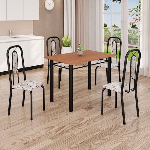 Conjunto Sala de Jantar com 4 Cadeiras Lívia Arabesco / Preto Marrom