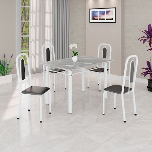 Conjunto Sala de Jantar com 4 Cadeiras Lívia Preto / Branco