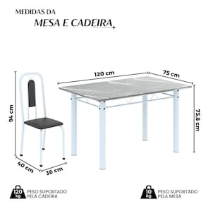 Medida da Mesa (A x L x P): 75,8 cm x 120 cm x 75 cm