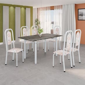 Conjunto Sala de Jantar com 6 Cadeiras Lara Bege / Branco