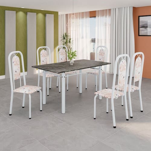 Quer deixar sua casa completa e prática? Uma dica bacana de como transformar o seu lar, deixando-o mais receptivo e bonito? Então você precisa de móveis indispensáveis para deixar seu lar muito mais aconchegante, receptivo e sempre disponível para receber a visita de amigos, familiares e convidados. Você vai se apaixonar por este incrível e moderno Conjunto de Mesa com 6 Cadeiras. Ideal para cozinha, ele é a melhor opção para completar o espaço que você desejar. Aproveite!!