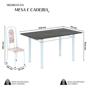 Medida da Mesa (A x L x P): 75,8 cm x 140 cm x 75 cm