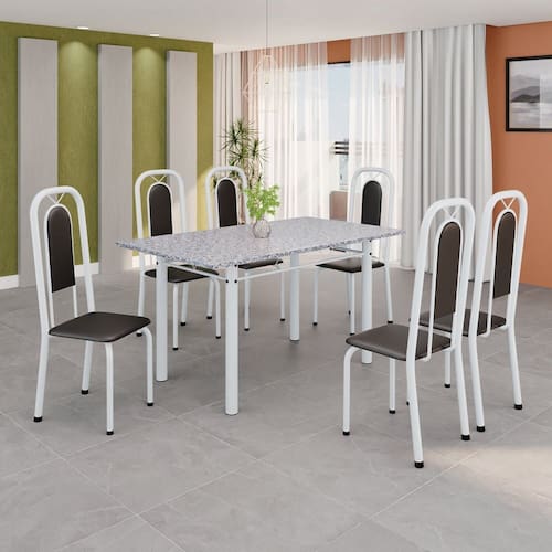 Quer deixar sua casa completa e prática? Uma dica bacana de como transformar o seu lar, deixando-o mais receptivo e bonito? Então você precisa de móveis indispensáveis para deixar seu lar muito mais aconchegante, receptivo e sempre disponível para receber a visita de amigos, familiares e convidados. Você vai se apaixonar por este incrível e moderno Conjunto de Mesa com 6 Cadeiras. Ideal para cozinha, ele é a melhor opção para completar o espaço que você desejar. Aproveite!!