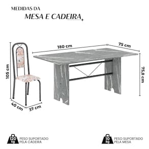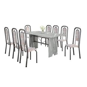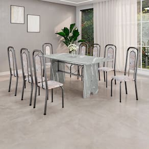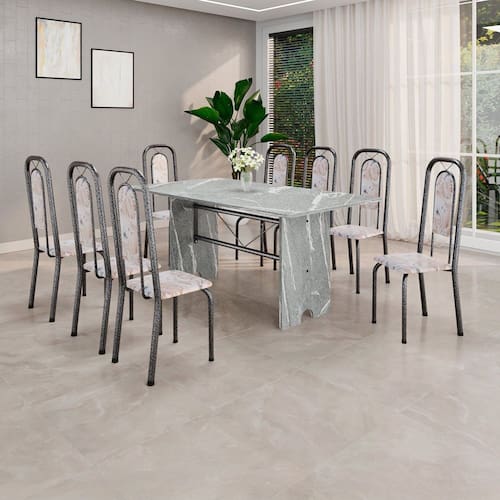 Quer deixar sua casa completa e prática? Uma dica bacana de como transformar o seu lar, deixando-o mais receptivo e bonito? Então você precisa de móveis indispensáveis para deixar seu lar muito mais aconchegante, receptivo e sempre disponível para receber a visita de amigos, familiares e convidados. Você vai se apaixonar por este incrível e moderno Conjunto de Mesa com 8 Cadeiras. Ideal para cozinha, ele é a melhor opção para completar o espaço que você desejar. Aproveite!! Medida da Mesa (A x L x P): 75,8 cm x 180 cm x 75 cm Peso da Mesa: 111,28 kg Mesa suporta até: 10.0000 Acabamento da Cadeira/Banco: Pintura Texturizada Acabamento da Mesa: Pintura Texturizada Ambiente Principal: Cozinha Cadeira/Banco Estofada: Encosto e Assento Estofados Cadeira/Banco estofada: Encosto e Assento Estofados Cadeira/Banco suporta até: 120.0000 codigo_ean: 7900288148933 Complexidade da Montagem: Baixa: pode ser montado por uma pessoa sozinha Cor: Bege / Prata Cor do Produto: Bege / Prata Cor Secundária: Bege De Canto (Canto Alemão): Não Enchimento do Assento: Espuma D-16 Escala de Brilho: Brilhante Espessura do Tampo: 1,5 mm Estrutura do Assento: MDP Formato do Tampo: Retangular Itens Inclusos: 1 Mesa, 8 Cadeiras, Manual de Montagem e Kit Ferragens Linha ou Coleção: Lara Manual de Montagem e Instalação: https://product-hub-prd.madeiramadeira.com.br/342622438/documents/307369ed-af09-4f5b-8eef-507d22d54748a8282374535281744236778593.pdf Marca: Soma Móveis Material da Base da Mesa: Aço Material da Estrutura da Cadeira: Aço Material do Tampo: Granito Medida da Cadeira/Banco (A x L x P): 105 cm x 37 cm x 40 cm Medida do Tampo (L x C x E): 180cm x 75cm x 1,5 cm Mesa Extensível: Não Necessita Montagem: Sim Origem do Produto: Nacional Peso da Cadeira/Banco: 2,7 kg Possui Apoio Para os Pés: Não Possui Suporte Giratório: Não Quantidade de Cadeiras: 8 Quantidade de Lugares: 08 Recomendações de Uso, Manutenção e Limpeza: Não permitir que molhe os pés da base, usar um pano de tecido macio e seco, evitar detergentes, alvejantes e produtos químicos de limpeza; no tampo usar tecido macio levemente umedecido. Revestimento da Cadeira/Banco: Couro Ecológico Sistema de Montagem: Parafusos