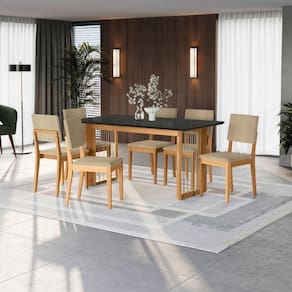 O destaque fica para a estrutura atrás do encosto, que além de um acabamento lindo, facilita o manuseio, garantindo um acabamento único e deixando sua sala de jantar espaço ainda mais completa. Renove e transforme seu espaço com o Conjunto de Mesa da Sala de Jantar Premium Kappesberg.