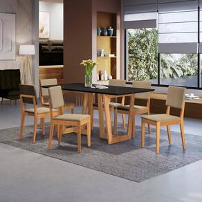 O destaque fica para a estrutura atrás do encosto, que além de um acabamento lindo, facilita o manuseio, garantindo um acabamento único e deixando sua sala de jantar espaço ainda mais completa. Renove e transforme seu espaço com o Conjunto de Mesa da Sala de Jantar Premium Kappesberg.