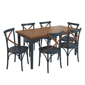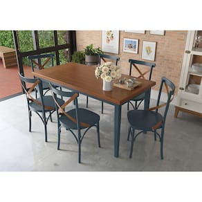 Conjunto Sala de Jantar e Cozinha Com 6 Cadeiras X Madeira Maciça Azul Petróleo -