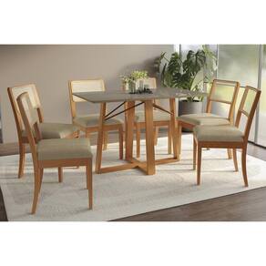 Sala de Jantar Completa Elma Premium Madeira Maciça c/ Tampo Madeirado c/ Vidro 160x90cm e 6 Cadeiras Lola Carvalho/Freijo Bronze - Boucle Bege - Kappesberg