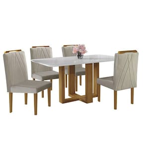 Conjunto Sala de Jantar em Madeira Maciça Mesa Tampo 4 Cadeiras Jade Móveis Mix