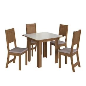 A mesa conta com base em MDP 15mm com estrutura em quatro pés, e tampo em MDF 15mm no moderno estilo canto moeda, proporcionando um visual diferenciado. Sua combinação de cores em Freijó com Off-White harmoniza facilmente com diversos estilos de decoração. Já as cadeiras possuem estrutura 100% em MDF, pintura UV de alta resistência e assento estofado com revestimento tipo linho, oferecendo conforto e sofisticação.