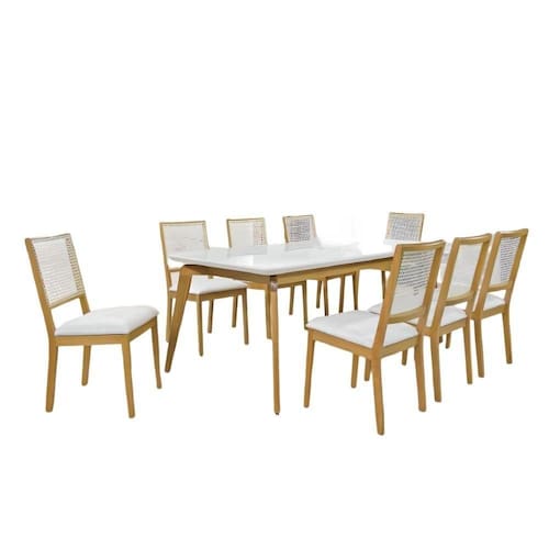 - Conjunto composto por: 1 Mesa Retangular e 8 Cadeiras;