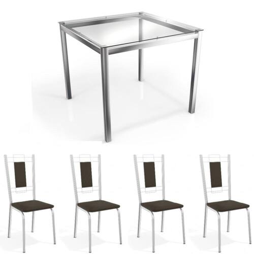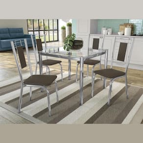 O Conjunto Sala de Jantar Linha Crome da Kappesberg, combina sofisticação e design moderno. Suas 4 cadeiras em Metal Cromado com espuma de alta densidade, oferecem conforto e durabilidade excelentes ao móvel. Seu tampo de vidro e pés cromados, adicionam beleza e modernidade ao ambiente, combinando com vários estilos de cozinha. Suas cadeiras cromadas com assento na cor Marrom, agrega sofisticação. Aproveite a qualidade do Conjunto da Kappesberg!