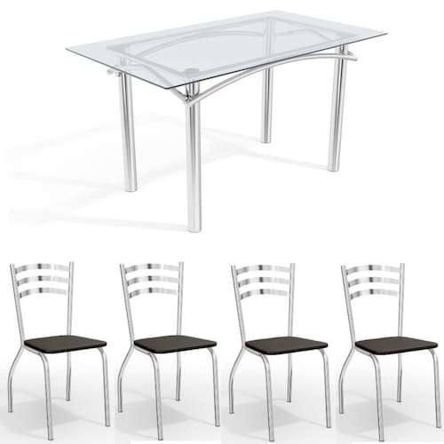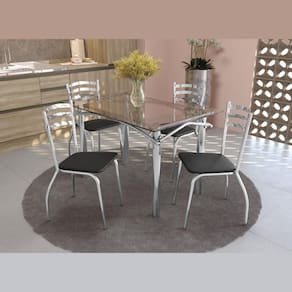 O Conjunto Sala de Jantar Linha Crome da Kappesberg, combina sofisticação e design moderno. Suas 4 cadeiras em Metal Cromado com espuma de alta densidade, oferecem conforto e durabilidade excelentes ao móvel. Seu tampo de vidro e pés cromados, adicionam beleza e modernidade ao ambiente, combinando com vários estilos de cozinha. Suas cadeiras cromadas com assento na cor Preto, agrega sofisticação. Aproveite a qualidade do Conjunto da Kappesberg!