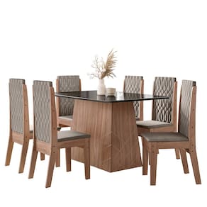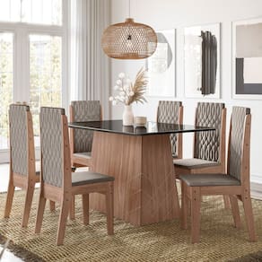 O conjunto Líbia destaca-se pela impressão dos detalhes amadeirados, replicando um design clean e despojado. O tampo em vidro da um toque de modernidade ao ambiente, deixando o espaço das refeições ainda mais charmoso. Os acabamentos oferecem maior qualidade e durabilidade ao móvel. A imagem é ilustrativa. Itens inclusos:1 mesa;6 cadeiras estofadas. Obs: O produto segue com manual de instruções e com todas as ferragens necessárias para sua montagem. Não disponibilizamos serviço de montagem. INFORMAÇÕES: Pintura UV texturizada em alto relevo com alta resistência a riscos;Estofados com espuma de alta densidade;Cadeira com encosto ergonômico e,Design moderno e diferenciado.