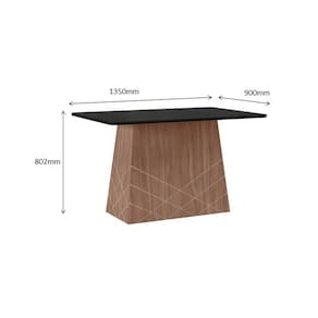 Dimensões da Mesa Altura: 802 mm Largura: 900 mm Profundidade: 1350 mm Peso: 48,649 kg Volume: 2 Cubagem: 0,0860 m³ Material: MDF 15mm e 18mm Tampo de MDF com vidro 4mm