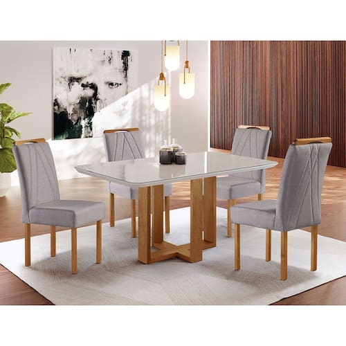 Características da Mesa: Material da Estrutura: Madeira Maciça de Eucaliptus Tratado, 100 Imunizado e Seco em Estufa. Acabamento: Resinado e Envernizado. Tampo Mesa: Borda Encabeçada MDF 25mm. Vidro Mesa: Vidro laqueado de 3mm. Necessita Montagem: Sim, necessário montador. Embalagem Tampo: Perfil tubex, papelão e plástico bolha. Embalagem Base: Papelão e plástico bolha. A base é enviada separadamente, facilitando o transporte até o local desejado.