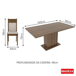 Conjunto Sala de Jantar Lousiana Madesa Mesa Tampo de Madeira com 6 Cadeiras - Marrom
