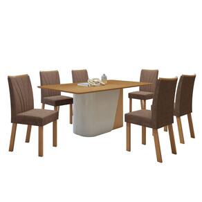 Conjunto Sala de Jantar Luar 170Cm Tampo No Glass com 6 Cadeiras Apogeu Amêndoa Clean/Off White/Amendoa Clean/Couro Morano - Marrom
