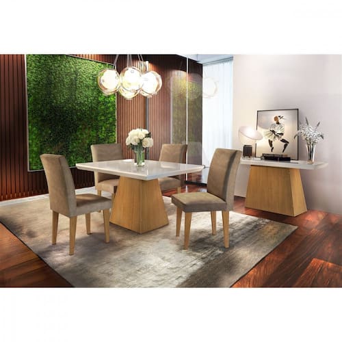 A sala de jantar Luna Rufato agrega muita beleza ao ambiente, sua sala de jantar merece um toque especial para receber família e amigos com estilo, com o conjunto de mesa com 4 cadeiras decora seu ambiente com praticidade e aconchego. Esse conjunto é composto por: