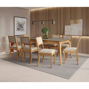Assento: Espuma | Cor: Linho Argila | Encosto: Almofada lisa | Espuma: Densidade 33 | Matéria-prima: Eucalipto | Sistema de montagem: Sistema Philips e Allen | Tampo: Vidro | Montagem: Necessita montagem | Altura: 80 | Quantidade de caixas da embalagem: 4 | Requer montagem: Sim | Quantidade de cadeiras: 8 | Material da tampa: MDF | Forma: Retangular | Tipo de Garantia: Garantia do fabricante | Duração da Garantia: 3 meses | Inclui manual de montagem: Sim | Ambiente recomendado: Sala de jantar