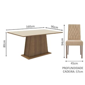 A mesa é retangular, muito espaçosa e possui o pé em pedestal. Uma opção que agrega beleza e conforto, pois possui espaço ideal para acomodar perfeitamente as pernas. O tampo em madeira possui o topo em pintura Crema, e além de lindo, é muito robusto e firme.