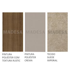 O acabamento combina os tons Crema e amadeirado Rustic, e é feito em Pintura Poliéster de alta resistência com 7 camadas de proteção que oferece maior qualidade e durabilidade ao móvel. Além disso, é ecológica, isenta de vapores prejudiciais à atmosfera.