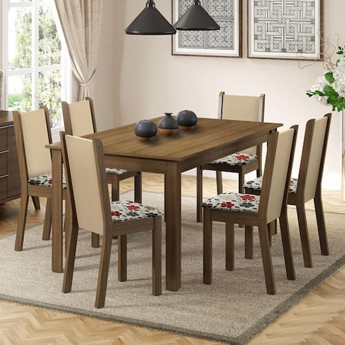 As cadeiras são fabricadas em MDF e MDP, com encosto em pintura Crema e assento estofado em tecido Floral Hibiscos, um material com toque suave e que se adapta às mais variadas decorações. O acabamento é no padrão amadeirado Rustic, feito em Pintura Poliéster com 7 camadas de proteção. O processo confere maior qualidade e durabilidade ao móvel. A imagem é meramente ilustrativa!