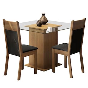 Itens inclusos: - Uma (1) mesa com 76 cm de altura e tampo quadro de vidro de 80 cm x 80 cm - Duas (2) cadeiras de 98 cm de altura com encosto em pintura e assento estofado