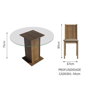 As cadeiras são produzidas em MDF e MDP, com encosto de madeira, combinando com a base da mesa. Possuem assento estofado, confortável e perfeito para relaxar. O tecido Sintético Bege tem toque suave e é fácil de combinar.