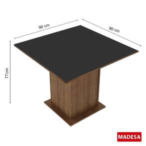 - Uma (1) mesa quadrada em pedestal com tampo de madeira de 90 cm x 90 cm.