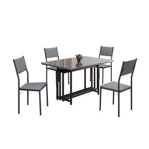 Conjunto Sala de Jantar Mesa 120cm X 90cm Base Pérola Tampo Mdf Laca com Vidro Florença Grafite / Preto