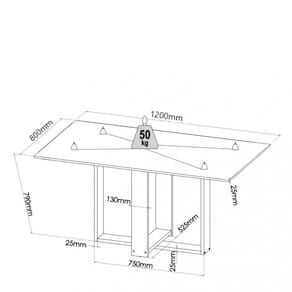 Dimensões Mesa: Altura: 78 cm Largura: 120 cm Profundidade: 80 cm