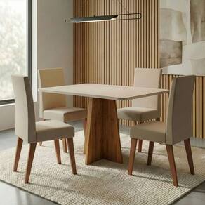 Conjunto Sala de Jantar Mesa 1,20m Moove 4 Cadeiras Linho Milano - Madeirado | Bege