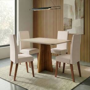 O conjunto de mesa Moove com 4 cadeiras Milano é a escolha ideal para quem busca elegância, conforto e funcionalidade na sala de jantar. A mesa possui tampo em MDF, com design moderno e base resistente que garante estabilidade e sofisticação ao ambiente. As cadeiras Milano são estofadas, proporcionando conforto no uso diário, e contam com estrutura em madeira maciça, que assegura resistência, durabilidade e um acabamento de alto padrão. Um conjunto harmonioso, perfeito para compor espaços acolhedores e cheios de estilo.