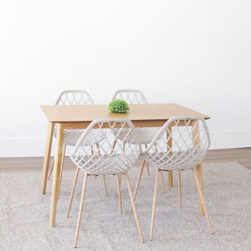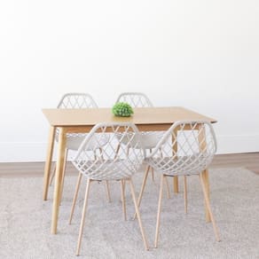 A Mesa Finlândia em madeira é ideal para quem busca elegância e praticidade, seu design rústico garante o detalhe que falta na decoração da sua casa. O conjunto com 4 cadeiras Cloe completa o kit e garante o custo benefício para transformar o estilo divertido da sua casa com muita praticidade e toques de design.