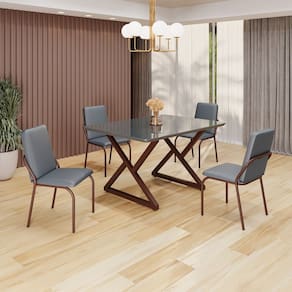 Este conjunto de mesa retangular e 4 cadeiras oferece estilo e praticidade. Com estrutura tubular em aço para estabilidade, o tampo em MDF Laca grafite com vidro adiciona sofisticação e resistência a riscos e manchas. As cadeiras combinam harmoniosamente com a mesa, garantindo conforto com estofamento. Ideal para diversos espaços, é perfeito para receber convidados ou desfrutar de refeições em família, criando um ambiente acolhedor e elegante.