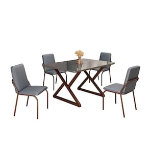 Conjunto Sala de Jantar Mesa 120x90cm Base Império Tampo MDF Laca com Vidro Malibu Grafite / Marrom