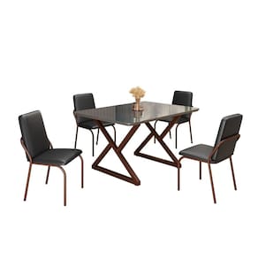 Conjunto Sala de Jantar Mesa 120x90cm Base Império Tampo MDF Laca com Vidro Malibu Preto / Marrom