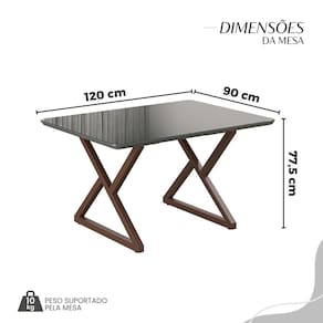 Medida da Mesa (A x L x P): 77,5cm x 120cm x 90cm