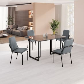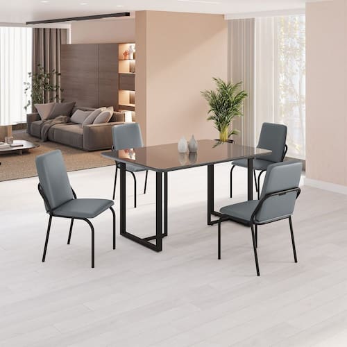 Este conjunto de mesa retangular e 4 cadeiras oferece estilo e praticidade. Com estrutura tubular em aço para estabilidade, o tampo em MDF Laca grafite com vidro adiciona sofisticação e resistência a riscos e manchas. As cadeiras combinam harmoniosamente com a mesa, garantindo conforto com estofamento. Ideal para diversos espaços, é perfeito para receber convidados ou desfrutar de refeições em família, criando um ambiente acolhedor e elegante. Medida da Mesa (A x L x P): 77,5cm x 120cm x 90cm Peso da Mesa: 37,2 kg Mesa suporta até: 10 kg Acabamento da Cadeira/Banco: Pintura Texturizada Acabamento da Mesa: Pintura Texturizada Ambiente Principal: Sala de Jantar Cadeira/Banco estofada: Encosto e Assento Estofados Cadeira/Banco suporta até: 120 kg Cor: Grafite/Preto Cor do Produto: Grafite/Preto Cor Secundária: Cinza De Canto (Canto Alemão): Não Enchimento do Assento: Espuma D-26 Escala de Brilho: Semi-Fosco Espessura do Tampo: 25 mm Estrutura do Assento: MDF 15mm, espuma D-26 e couro ecológico. Formato do Tampo: Retangular Itens Inclusos: 1 Mesa, 4 Cadeiras, Manual De Montagem E Ferragens. Linha ou Coleção: Malibu Manual de Montagem e Instalação: https://cdn2.madeiramadeira.com.br/atributo/moveis-teixeira/2174593-4938-17220155058218.pdf Material da Base da Mesa: Aço Material da Estrutura da Cadeira: Aço Material do Tampo: MDF/Vidro Medida da Cadeira/Banco (A x L x P): 88,8cm x 44cm x 51cm Medida do Tampo (L x C x E): 90cm x 120cm x 2,5cm Mesa Extensível: Não Necessita Montagem: Não Origem do Produto: Nacional Peso da Cadeira/Banco: 6,16 kg Possui Apoio Para os Pés: Não Quantidade de Lugares: 04 Recomendações de Uso, Manutenção e Limpeza: Usar um pano de tecido macio e seco, evitar detergentes, alvejantes e produtos químicos de limpeza; no tampo usar tecido macio levemente umedecido. Revestimento da Cadeira/Banco: Couro Ecológico