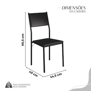 Este conjunto de mesa retangular e 4 cadeiras oferece estilo e praticidade. Com estrutura tubular em aço para estabilidade, o tampo em MDF cinamomo adiciona sofisticação e resistência a riscos e manchas. As cadeiras combinam harmoniosamente com a mesa, garantindo conforto com estofamento. Ideal para diversos espaços, é perfeito para receber convidados ou desfrutar de refeições em família, criando um ambiente acolhedor e elegante. Medida da Mesa (A x L x P): 77cm x 120cm x 90cm Peso da Mesa: 20,5 kg Mesa suporta até: 10.0000 Acabamento da Cadeira/Banco: Pintura Texturizada Acabamento da Mesa: Melamínico Ambiente Principal: Sala de Jantar Cadeira/Banco estofada: Encosto e Assento Estofados Cadeira/Banco Estofada: Encosto e Assento Estofados Cadeira/Banco suporta até: 120.0000 codigo_ean: 7909903962893 Complexidade da Montagem: Baixa: pode ser montado por uma pessoa sozinha Cor: Preto Cor do Produto: Preto De Canto (Canto Alemão): Não Enchimento do Assento: Espuma D-12 Escala de Brilho: Semi-Fosco Espessura do Tampo: 20 mm Formato do Tampo: Retangular Itens Inclusos: 1 Mesa, 4 Cadeira, Manual De Montagem E Ferragens. Linha ou Coleção: Florença Manual de Montagem e Instalação: https://product-hub-prd.madeiramadeira.com.br/925883/documents/df6332bf-b713-4f90-a388-b0145eb58ff92166790493817218190489841.pdf Material da Base da Mesa: Aço Material da Estrutura da Cadeira: Aço Material do Tampo: MDF Medida da Cadeira/Banco (A x L x P): 90,5cm x 44,5cm x 49cm Medida do Tampo (L x C x E): 90cm x 120cm x 2cm Mesa Extensível: Não Necessita Montagem: Sim Origem do Produto: Nacional Peso da Cadeira/Banco: 4,74 kg Possui Apoio Para os Pés: Não Quantidade de Lugares: 04 Recomendações de Uso, Manutenção e Limpeza: Usar um pano de tecido macio e seco, evitar detergentes, alvejantes e produtos químicos de limpeza; no tampo usar tecido macio levemente umedecido. Revestimento da Cadeira/Banco: Couro Ecológico Sistema de Montagem: Parafusos
