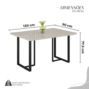 Medida da Mesa (A x L x P): 77,5cm x 120cm x 90cm