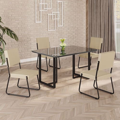 Este conjunto de mesa retangular e 4 cadeiras oferece estilo e praticidade. Com estrutura tubular em aço para estabilidade, o tampo em MDF Laca grafite com vidro adiciona sofisticação e resistência a riscos e manchas. As cadeiras combinam harmoniosamente com a mesa, garantindo conforto com estofamento. Ideal para diversos espaços, é perfeito para receber convidados ou desfrutar de refeições em família, criando um ambiente acolhedor e elegante.