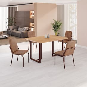Este conjunto de mesa retangular e 4 cadeiras oferece estilo e praticidade. Com estrutura tubular em aço para estabilidade, o tampo em MDF cinamomo adiciona sofisticação e resistência a riscos e manchas. As cadeiras combinam harmoniosamente com a mesa, garantindo conforto com estofamento. Ideal para diversos espaços, é perfeito para receber convidados ou desfrutar de refeições em família, criando um ambiente acolhedor e elegante. Medida da Mesa (A x L x P): 77cm x 120cm x 90cm Peso da Mesa: 20,5 kg Mesa suporta até: 10 kg Acabamento da Cadeira/Banco: Pintura Texturizada Acabamento da Mesa: Pintura Texturizada Ambiente Principal: Sala de Jantar Cadeira/Banco estofada: Encosto e Assento Estofados Cadeira/Banco suporta até: 120 kg Cor: Marrom Cor do Produto: Marrom Cor Secundária: Marrom De Canto (Canto Alemão): Não Enchimento do Assento: Espuma D-26 Escala de Brilho: Semi-Fosco Espessura do Tampo: 20 mm Estrutura do Assento: MDF 15mm, espuma D-26 e couro ecológico. Formato do Tampo: Retangular Itens Inclusos: 1 Mesa, 4 Cadeiras, Manual De Montagem E Ferragens. Linha ou Coleção: Malibu Manual de Montagem e Instalação: https://cdn2.madeiramadeira.com.br/atributo/moveis-teixeira/2174593-4938-17220155058218.pdf Material da Base da Mesa: Aço Material da Estrutura da Cadeira: Aço Material do Tampo: MDF Medida da Cadeira/Banco (A x L x P): 88,8cm x 44cm x 51cm Medida do Tampo (L x C x E): 90cm x 120cm x 2cm Mesa Extensível: Não Necessita Montagem: Não Origem do Produto: Nacional Peso da Cadeira/Banco: 6,16 kg Possui Apoio Para os Pés: Não Quantidade de Lugares: 04 Recomendações de Uso, Manutenção e Limpeza: Usar um pano de tecido macio e seco, evitar detergentes, alvejantes e produtos químicos de limpeza; no tampo usar tecido macio levemente umedecido. Revestimento da Cadeira/Banco: Couro Ecológico